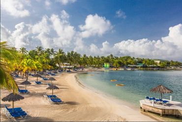Mamora Bay’s beautiful swathe of white sand, fringed by palm trees that cast cooling, deep blue shade on our ample beachfront loungers, is one for the picture books. Here, you will enjoy the views of our lovely, Mediterranean-style Villas that dot the verdant hillside, while boats and brightly colored catamarans quietly bob at anchor in the warm Caribbean waters.