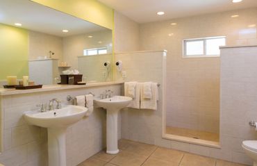 In “The Village,” dotting the hillside above Mamora Bay, our Villas boast 1,600 square feet of lavish living space, not to mention striking views of the bay, Villas can accommodate up to 8 guests, making them a versatile option for couples, families and wedding parties alike. Each Villa features a full kitchen, as well as sliding glass doors that open up to a large outdoor area.